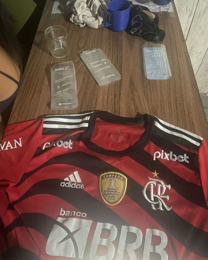Quando a equipe se aproximava para fazer a intervenção, dois indivíduos com as mesmas características repassadas perceberam a presença dos policiais militares e empreenderam fuga por uma região alagada. Porém ficou na casa ainda a proprietária S.O.M., de 23 anos, que segundo o seu relato teriam ido oferecer os celulares para ela comprar.
