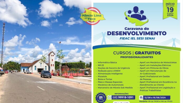 O Projeto Caravana do Desenvolvimento chega a Mâncio Lima trazendo uma excelente oportunidade para os moradores da região: centenas de vagas gratuitas em diversos cursos de capacitação. Após passar por várias cidades do Vale do Juruá, a caravana está pronta para oferecer treinamento em áreas variadas, como mecânica automotiva, refrigeração, culinária e informática.
