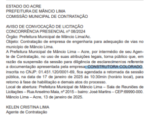 Uma das principais demandas da população é ver ruas asfaltadas, e conforme publicação do Diário Oficial do Acre, empresas de grande porte da região do Vale do Juruá estão em tratativas com a prefeitura para pavimentar ruas de Mâncio Lima, a exemplo das empresas MD CONSTRUÇÕES EIRELLI e Construtora Colorado.