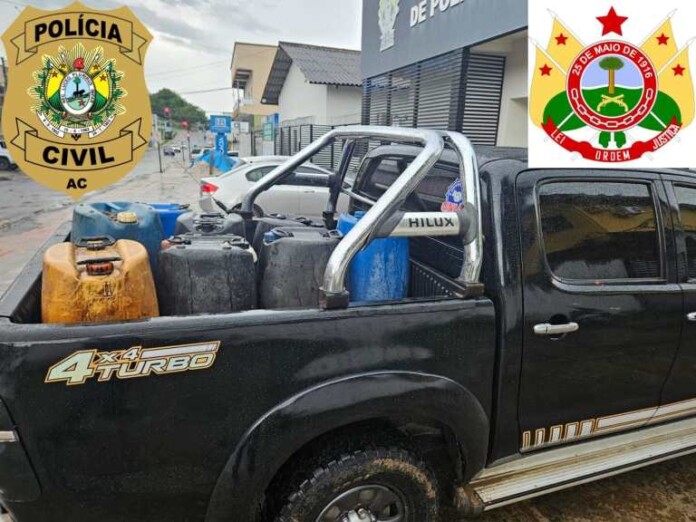Policia Civil por meio do NEPATRI (Núcleo Especializado de Investigação de Crimes Patrimoniais) em operação conjunta com a Polícia Militar apreendeu aproximadamente 400 litros de combustíveis oriundo da prática de estelionato em um posto de combustível na cidade de Cruzeiro do Sul/AC.