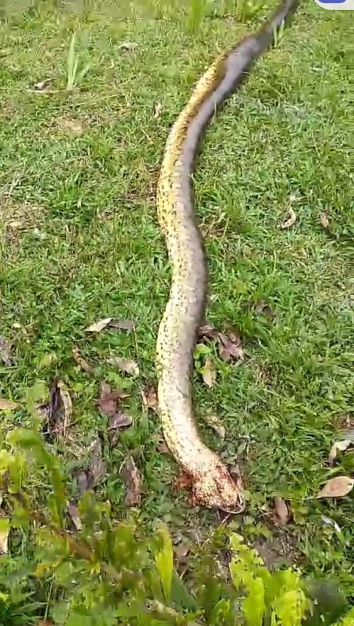 Segundo relatos dos moradores, a serpente ficou presa ao engolir a isca, um macaco usado na espera para atrair jacarés. Sem conseguir remover o animal sem risco, a decisão tomada foi abater a sucuri.