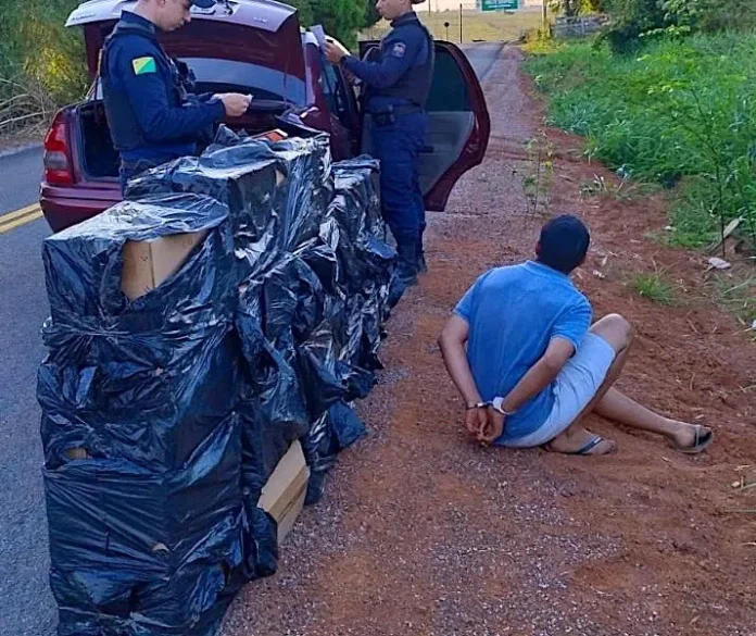 A Polícia Militar apreendeu durante patrulhamento no Ramal Novo Horizonte, próximo ao km 1, um carregamento de cigarros contrabandeados. A ação ocorreu durante abordagem a um veículo conduzido por G.S.C., de 31 anos.