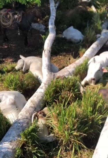 O número exato de bois mortos ainda não foi confirmado, mas testemunhas relataram que as perdas foram significativas.