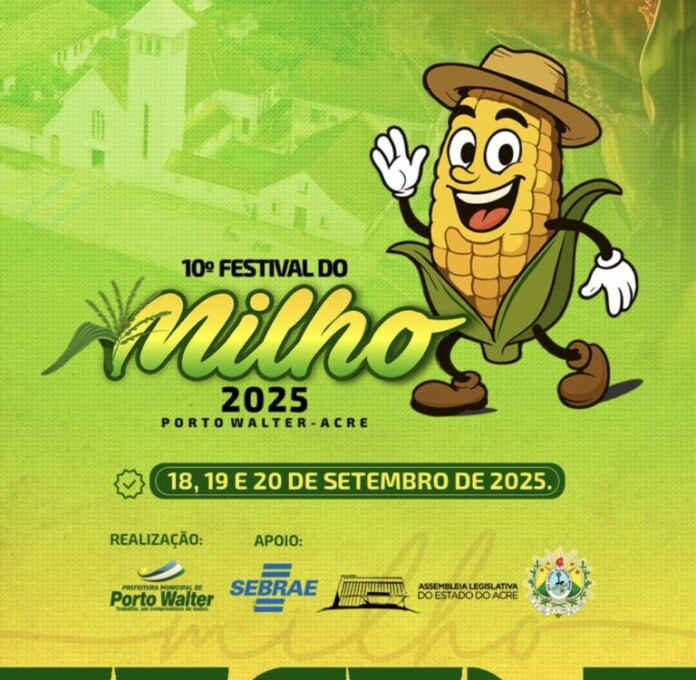 O 10° Festival do Milho 2025 em Porto Walter promete três dias de intensa programação cultural, esportiva e gastronômica. O evento será realizado entre os dias 18 e 20 de setembro, reunindo atrações para toda a família.