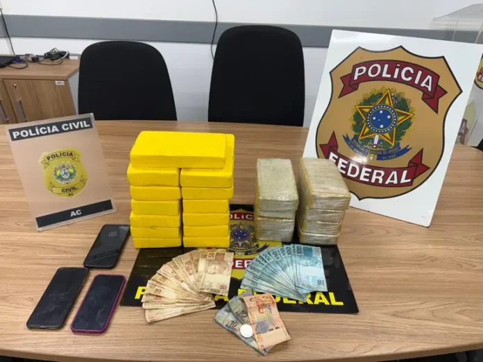 Em ação integrada, a Polícia Federal e a Polícia Civil do Acre prenderam em flagrante três mulheres e apreenderam aproximadamente 21 quilos de cocaína e pasta base, além de R$ 3.350,00 em espécie, durante diligência realizada na tarde da última terça-feira, 16, no centro de Brasileia. A operação teve início a partir de levantamentos de inteligência que apontavam o uso de uma residência como ponto de armazenamento e distribuição de drogas na região.
