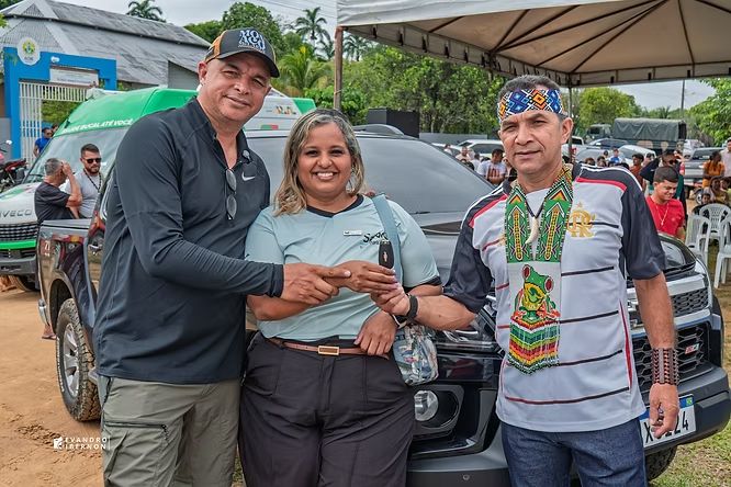 Também foi entregue uma caminhonete para a comunidade Puyanawa, que será utilizada em emergências médicas e no fortalecimento da estrutura do posto de saúde local.