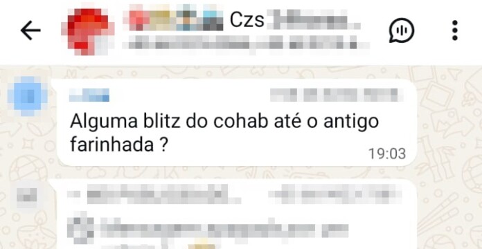 No entanto, alguns moradores têm compartilhado, em grupos de WhatsApp, a localização das blitzes. Em muitos casos, participantes perguntam onde estão os agentes e outros repassam rapidamente a informação.