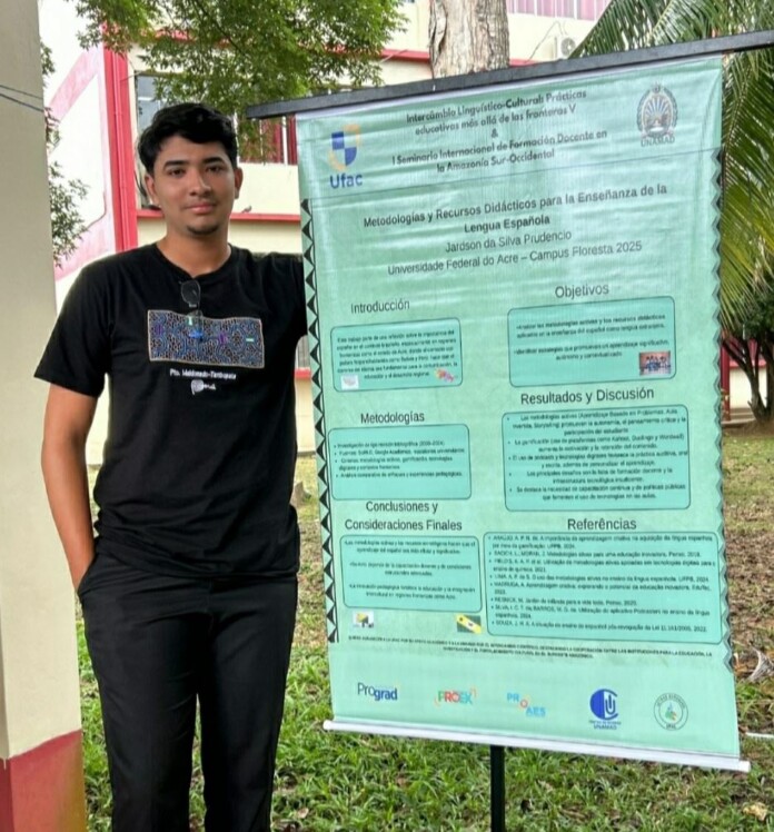 Durante o evento, Jardson apresentou o trabalho intitulado “Metodologías y recursos didácticos para la enseñanza de la lengua española”, resultado de pesquisas desenvolvidas no âmbito da UFAC. O estudo propõe metodologias e recursos didáticos inovadores para o ensino da língua espanhola, com ênfase nas realidades culturais e linguísticas da Amazônia fronteiriça.
