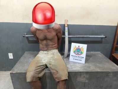 A Polícia Militar deteve, na noite de sexta-feira (31), um homem de 30 anos que aterrorizava moradores do bairro Miritizal, em Cruzeiro do Sul, portando um facão e ameaçando quem passava pela Rua Nossa Senhora das Graças, nas proximidades da Igreja Santo Antônio. A ação começou após denúncia de uma mulher de 54 anos, moradora da região, que acionou a PM via COPOM informando que o indivíduo, seu filho, monitorado por tornozeleira eletrônica descarregada, estava alterado e perseguindo pedestres.