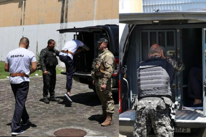 Os presos foram escoltados por forças de segurança do Rio de Janeiro até a Base Aérea do Galeão, na Ilha do Governador, e permaneceram algemados nas mãos e pés durante todo o trajeto, que durou cerca de uma hora e meia. Na unidade federal, eles passam por trâmites administrativos antes de serem acomodados.