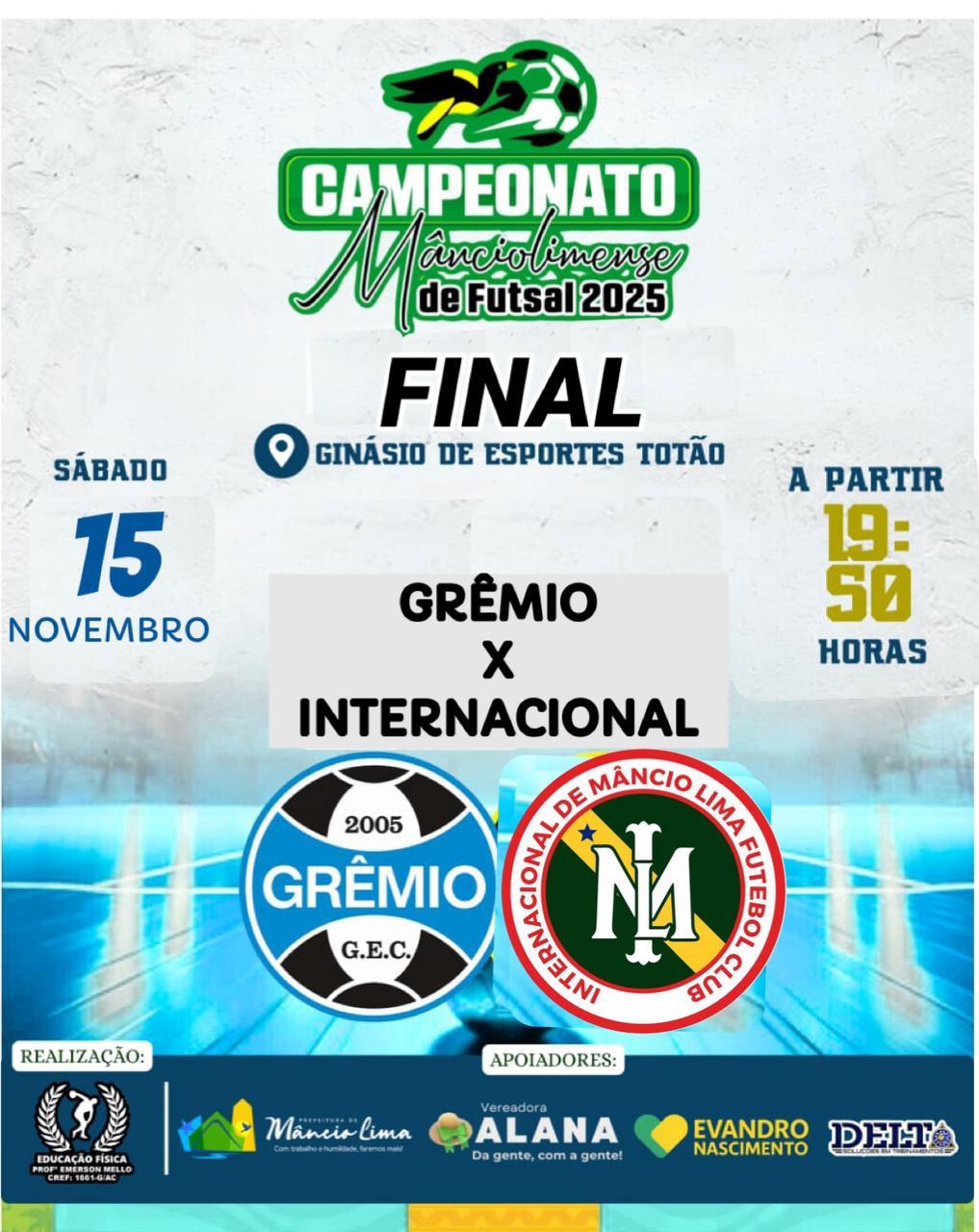 A final da competição está marcada para amanhã, às 19h50, em Mâncio Lima. No entanto, seis atletas do Grêmio estarão em Cruzeiro do Sul, onde disputarão a Supertaça no ginásio Jader Machado, com início às 20h00 contra a equipe de Jordão. A premiação da Supertaça é seis vezes superior à do campeonato de Mâncio Lima.