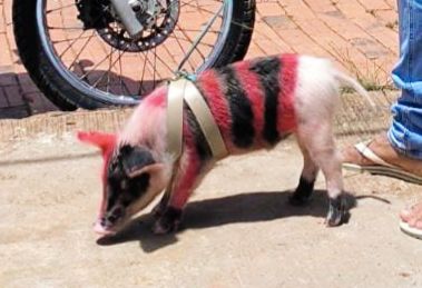 Em Porto Walter, torcedor pinta porquinho de estimação com as cores do Flamengo para assistir à final da Libertadores