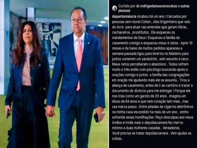 A deputada federal Antônia Lúcia (Republicanos–AC) voltou a usar as redes sociais para expor a crise no casamento com o também deputado federal Silas Câmara (Republicanos -AM). Em um desabafo publicado nesta terça-feira, 2, ela afirma que o marido, de 64 anos, teria deixado a família para manter um relacionamento com um homem mais jovem.