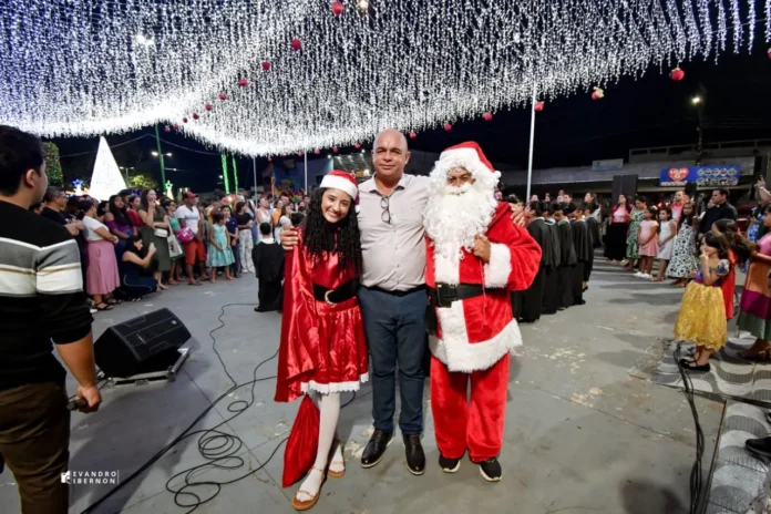 A Prefeitura de Mâncio Lima realizou, na noite desta sexta-feira, 5, na Praça São Sebastião, a cerimônia de acender das luzes de Natal, marcando oficialmente o início das celebrações de fim de ano no município. O evento reuniu moradores e visitantes. O Coral Vozes da Aurora, formado por alunos da rede municipal, conduziu a contagem regressiva e emocionou o público com uma apresentação após o espetáculo de luzes.