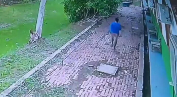 A ação ocorreu na manhã de sexta-feira, 5. De acordo com a análise das câmeras de monitoramento, o homem aparece caminhando pela lateral da unidade escolar, adentra a escola, aborda o estudante, subtrai o celular, agride com o terçado na coxa da vítima e em seguida foge em uma bicicleta de um aluno.