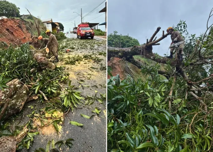A tempestade que atingiu Cruzeiro do Sul na tarde desta segunda-feira (8) provocou a queda de várias árvores em diferentes regiões do município. Ao todo, cinco ocorrências foram registradas pelo Corpo de Bombeiros nos bairros Aeroporto Velho, João Alves, Cruzeirão e Canela Fina. As equipes trabalharam até a noite, mas não conseguiram atender todos os chamados devido ao volume de solicitações.