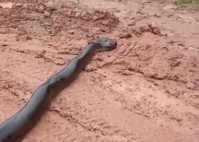 Nesta quarta-feira, dia 10, uma sucuri de aproximadamente 5 metros foi abatida por moradores próximo à ponte do Igarapé Maloca, no bairro Maloca, em Porto Walter.