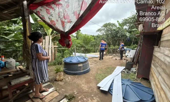 Uma família precisou ser retirada de uma residência localizada na avenida Dorva Caminho, no bairro Areal, em Rio Branco, na quarta-feira (17), após o registro de ameaça de desbarrancamento durante a forte chuva que atingiu a capital acreana.