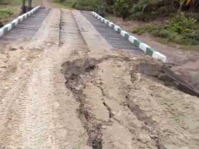 Erosão compromete cabeceira de ponte e comunidade pode ficar isolada no interior do Acre