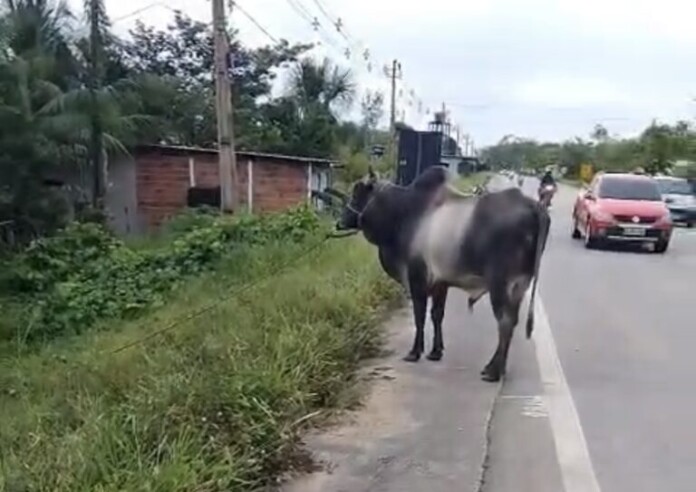 Um vídeo enviado à redação do Juruá 24 Horas mostra a presença de um boi circulando às margens da estrada Variante, na saída de Cruzeiro do Sul (AC). Segundo o condutor que registrou as imagens, o animal estava próximo à pista e poderia invadir a via a qualquer momento, oferecendo risco aos motoristas que trafegam pelo local.