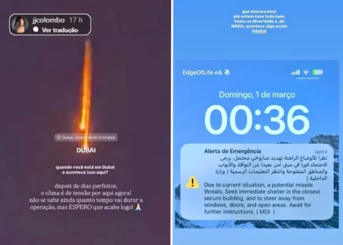 Em publicação nas redes sociais, ela relatou o clima de apreensão.“Quando você está em Dubai e acontece isso aqui? Depois de dias perfeitos, o clima é de tensão por aqui agora. Não se sabe ainda quanto tempo vai durar a operação, mas espero que acabe logo”, escreveu.