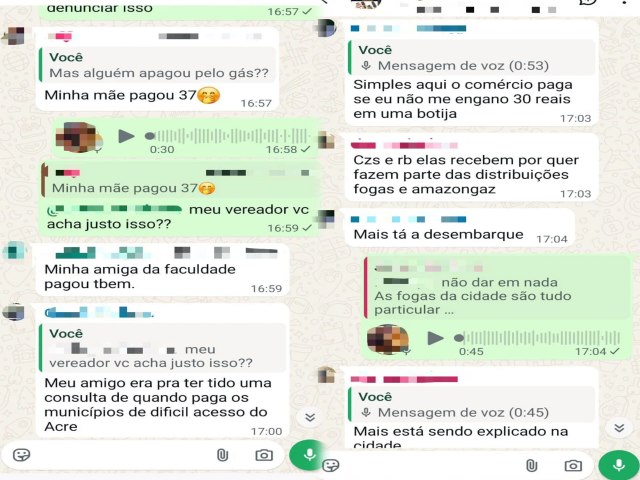 Neste domingo (1), uma série de denúncias chegou à redação do ContilNet apontando possíveis irregularidades na execução do programa Gás do Povo no município de Marechal Thaumaturgo, interior do Acre. Segundo prints de conversas em grupos de WhatsApp, beneficiários estão sendo obrigados a pagar taxas extras para ter acesso à botija de gás, mesmo tratando-se de um benefício social do governo.