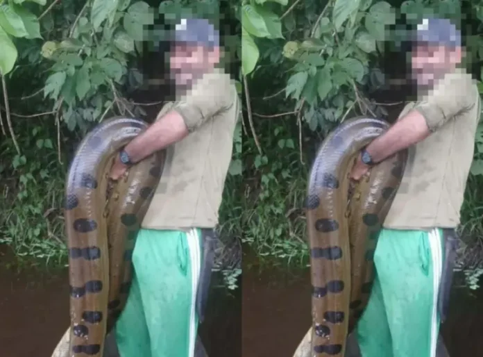 Um pescador do município de Santa Rosa do Purus passou por um momento inesperado no último domingo (29), ao encontrar uma sucuri de grande porte presa em sua rede de pesca, durante uma pescaria no Lago Novo, localizado na zona rural da região.