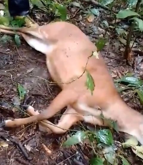 Nas imagens, dois indígenas aparecem celebrando após abater um veado. Em tom de gratidão, um deles diz: “Oh glória, graças a Deus. Deus é fiel. Temos que ir para casa amanhã e pedimos a Deus em nossa oração que nos desse uma caça grande. Deus é fiel.”