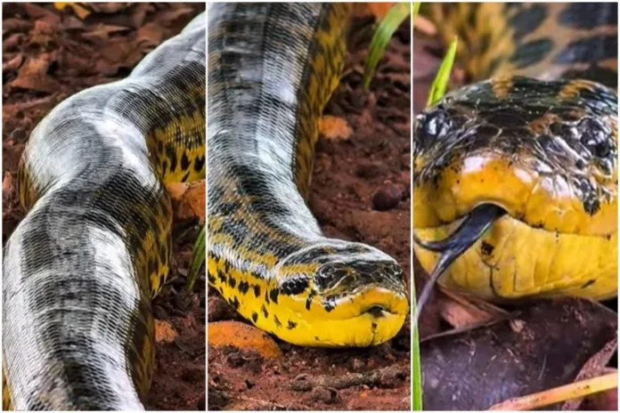 O guia de turismo Fagner Roque de Almeida compartilhou nas redes sociais, nesta quarta-feira (8/4), um vídeo raro, que mostra de perto uma sucuri-amarela, também conhecida como anaconda-amarela, feito durante um safári no Pantanal do Mato Grosso do Sul.