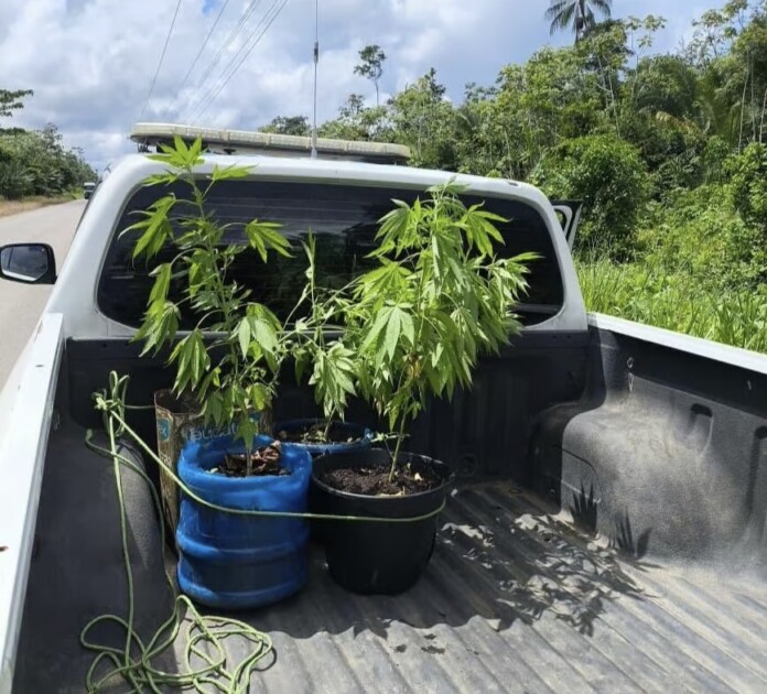 A Polícia Militar e a Polícia Rodoviária Federal (PRF) prenderam nesta sexta-feira, 10, próximo à BR- 364, em Rodrigues Alves, com quatro pés de maconha em vasos, um homem identificado por Gean, de 25 anos, que é monitorado com tornozeleira eletrônica.