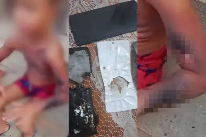 A criança, porém, teria encontrado o telefone e o usava escondido da mãe quando tudo aconteceu. A mulher relata ter escutado o barulho da explosão e em seguida gritos do filho. Ainda segundo ela, o aparelho pegou fogo e as chamas ainda atingiram o colchão da cama em que a criança estava sentada.