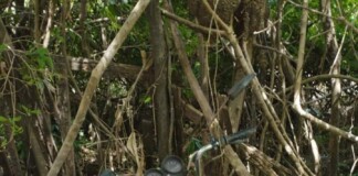 Em Mâncio Lima, carro cai em buraco encoberto pela água