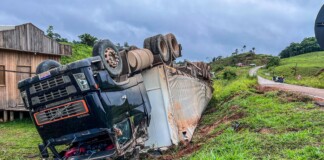 Carreta tomba devido às más condições da BR 364 entre Tarauacá...
