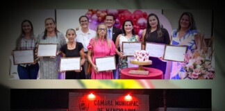Em sessão solene na Câmara de Vereadores, 09 mulheres recebem o...