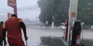 Vídeo: forte chuva alaga posto de combustível em Cruzeiro do Sul