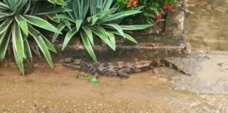 Jacaré de mais de um metro sai de bueiro e assusta...