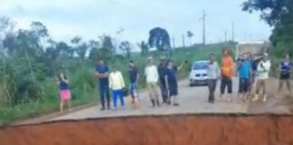 Vídeo mostra trecho da BR-364 sendo levado por forte correnteza; assista