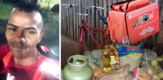 Entregador de bike chora ao ganhar cesta básica e botija de...
