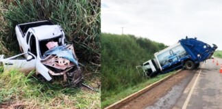 Carro colide contra caminhão de lixo e deixa dois gravemente feridos...