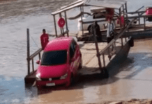 Carro quase cai dentro d’água em travessia na balsa de Rodrigues Alves