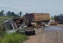 Grave acidente na BR-364 entre caminhões deixa pelo menos um morto e outro ferido