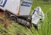 Caminhão da Gazin capota na BR-364, no interior do Acre