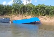 VÍDEO: barco que transportava caixas de cerveja naufraga em rio no interior do Acre