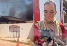 Cadelinha é resgatada por Bombeiro em meio as chamas que destruíram casa, em Rio...