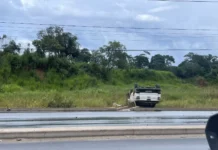 Carro capota na rodovia que liga Cruzeiro do Sul a Mâncio Lima; motor é...