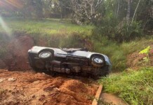 No Acre, carro com nove pessoas bate em buraco, perde controle e capota