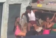 No vídeo, é possível ver mulheres dançando em cima do caminhão de lixo.