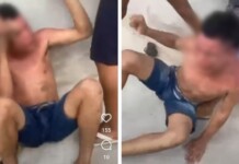 Nas imagens em que o homem apanha da população, é possível ouvir alguém dizer: