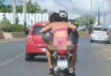 Mulher é flagrada vestindo apenas roupas íntimas em garupa de moto