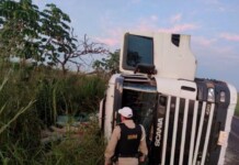 Carreta carregada com cerca de 20 toneladas de maconha tomba em rodovia